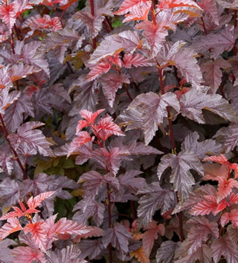 Physocarpus opulifolius Lady in Red, også kjent som Solbærspirea Lady in Red, er en elegant og dekorativ hekkplante som gir hagen en dramatisk og sofistikert atmosfære. Denne busken er kjent for sine dyprøde, vinfargede blader som skifter til en intens purpurrød nyanse gjennom vekstsesongen. Om sommeren blomstrer den med små, rosa-hvite blomster i tette klaser, som skaper en vakker kontrast til bladverket.