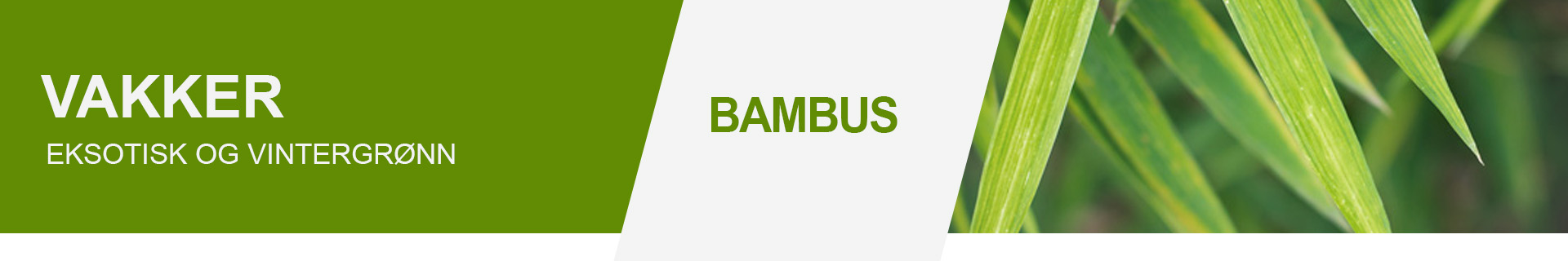 De siste årene har Bambus blitt et vanlig syn i norske hager. Bambus er en vakker, eksotisk og vintergrønn plante. Vi anbefaler Bambus til hekk men du kan også bruke Bambus i grupper eller enkeltvis.
