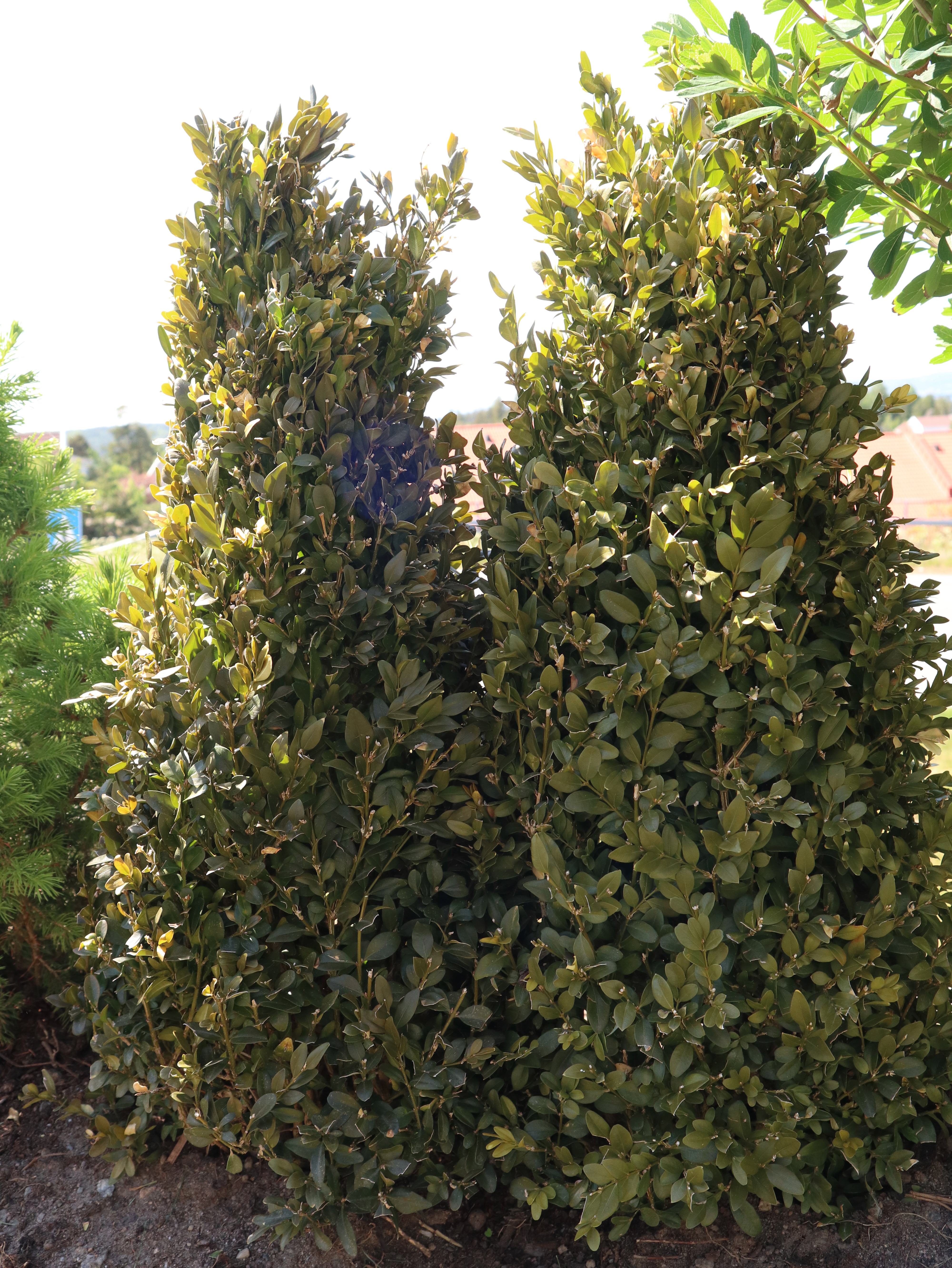 Nå er det bare buksbom som gjelder for det glade og gjestfrie paret (de bød på kaffe og jordbær!) – men Kari benytter også sjansen til å slå et slag for Teppemispel Graff, som vi også tilbyr.