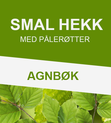 Agnbøk (Carpinus betulus) likner på vanlig bøk og brukes til klippede hekker, men bladene til Agnbøk er mer riflete enn vanlig bøk. Agnbøk tar relativt lite plass i bredden og hekkens røtter vokser mer nedover enn utover. Agnbøk er en robust og lite vedlikeholdskrevende hekkplante. Hekken forandrer utseende og gir liv i hagen hele året. Etter vinteren varsler friske grønne skudd at våren har kommet. Om sommeren pynter Agnbøkens knallgrønne blader opp i hagen, og om høsten lyser hekken opp med visne blader i høstfarger. Agnbøk trives best i sol eller delvis skygge og kan plantes i jord med sand- eller leirholdig tekstur. Den kan også trives i ren sand- og leirjord, så lenge du sikrer at hekken får nødvendig vann og næring.  Dette er vanlige hekkplanter og passer for deg som har tid til å vente på at hekken blir tett. Plantene har en mer uregelmessig grenplassering og er mer åpne enn Prima Ferdighekk document.addEventListener('DOMContentLoaded', function() { var link = document.getElementById('dynamicLink'); var host = window.location.hostname; if (host === 'vestlandshekk.no') { link.href = 'https://vestlandshekk.no/Agnboek-Ferdighekk-125-cm/1002-D67B'; } else { link.href = 'https://www.hekkplanter.no/Agnboek-Prima-ferdighekk-125-cm/1002-D67B.10'; } }); . Vanlige hekkplanter er klippet og passet som våre øvrige kvalitetsplanter. Etter ca. 2 år, når plantene er ferdig utvokste, vil de ha forgreinet seg og blitt en tett hekk. Antall planter pr. meter: 3-4 Herdighetssone: H4