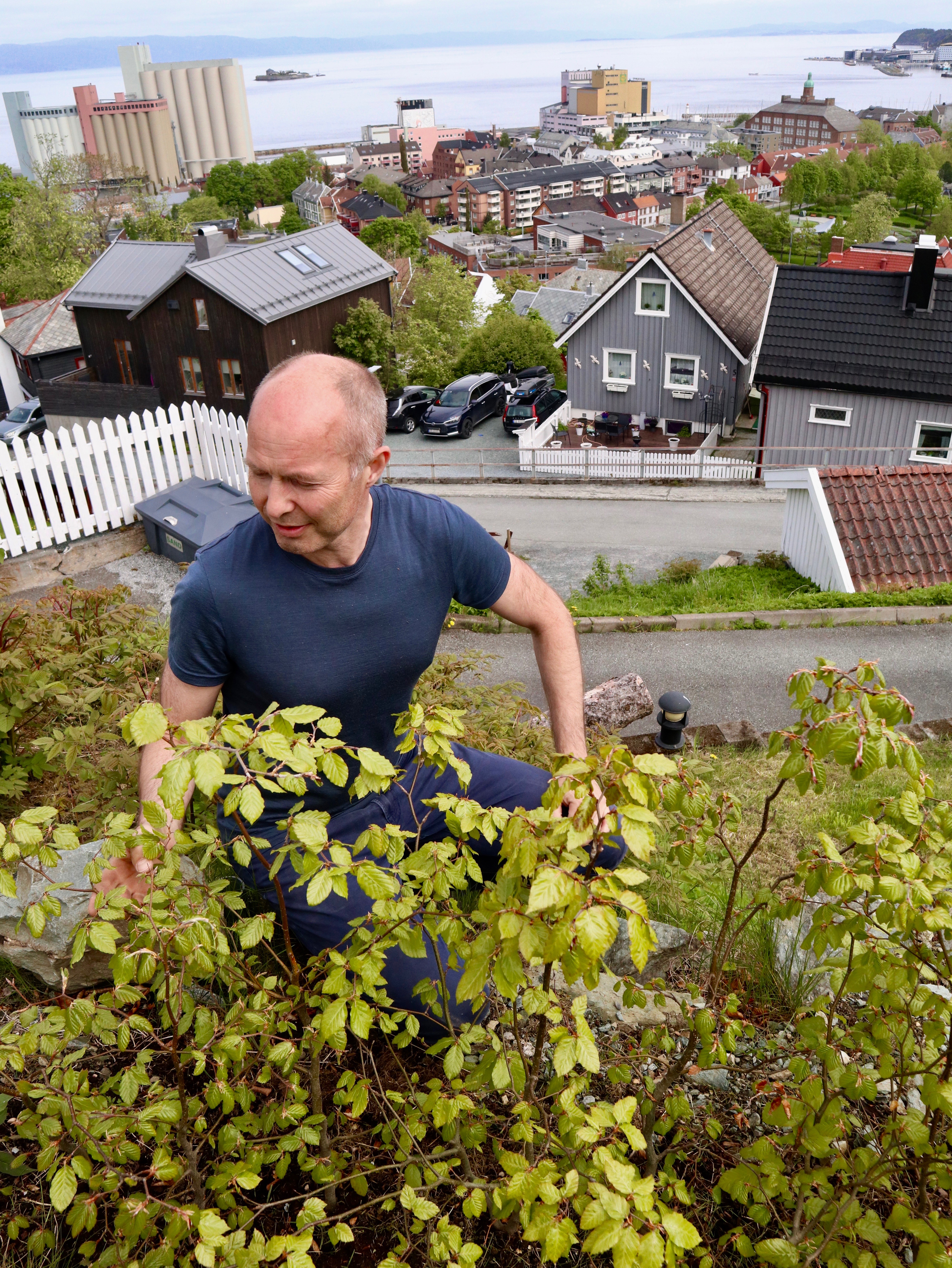 -Nei, men vi syntes likevel det ble for åpent, for stusslig akkurat på kanten her. Vi vil jo også beholde utsikten og vil ikke ha noen høy og ruvende hekk, bare et skille mellom hagen og den bratte oppkjørselen.